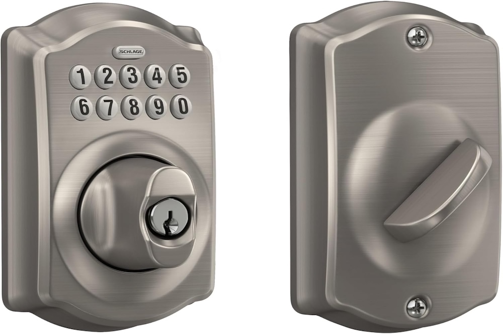 Our best seller! The Schlage Camelot keyless entry deadbolt is durable and easily programmable.