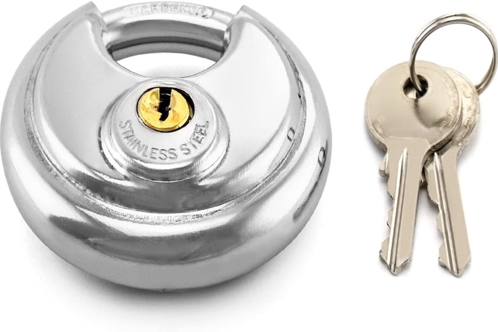 Hardened steel shackle for increased strength and durability. Comes with locks and 2 keys.