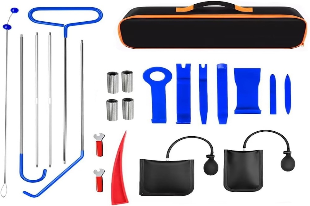 This 22 piece kit has a long-reach bar, inflatable wedges, and a pry-tool set for door panels.